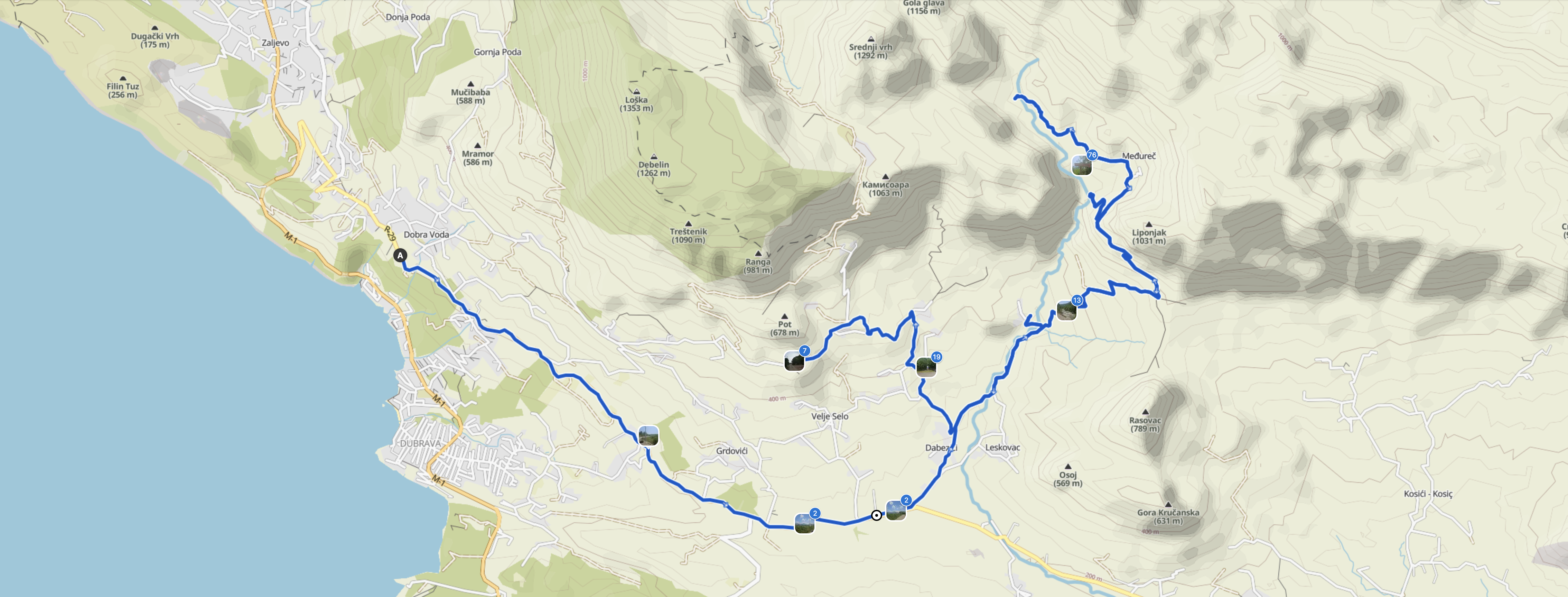 | Zwischenstopps | Dobra Voda, Dabezići, Medureč |